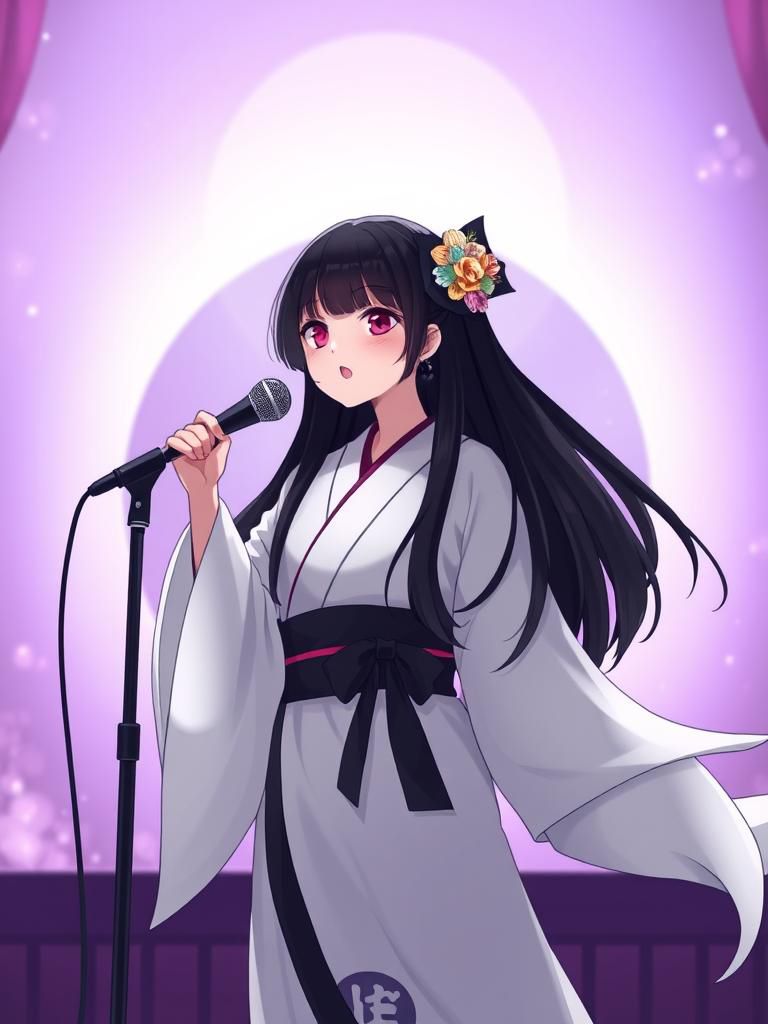 2)ミョウリさんの順番が来ました。秘書はミョウリさんをオーディションの部屋に導きました。二人の男性はテーブルの後ろに座っています。窓には東京の夜景が見えます。二人はスーツを着ています。一人は会社のマネージャーです。「ハロウィンですか。」ミョウリさん「すみません。」マネージャー「何で幽霊のような衣装を着ていますか。」ミョウリさん「実は本当に幽霊です。」マネージャー「幽霊は必要ありません。」ミョウリさん「わかりました。」もう一人の男性は会社の上司です。「すみません、新しい声が必要です。私は山口です。お名前は?」ミョウリさん「ミョウリです。」山口さん「ミョウリさんはカラオケが好きですか。」ミョウリさん「もちろん。」